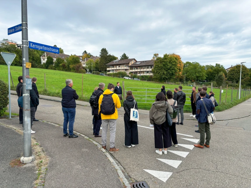 Ein Teil der Parzelle «Kerngartenweg» wird aktuell für eine benachbarte Baustelle als Installationsplatz verwendet. Die temporäre Nutzung dauert bis Mitte Mai 2025.