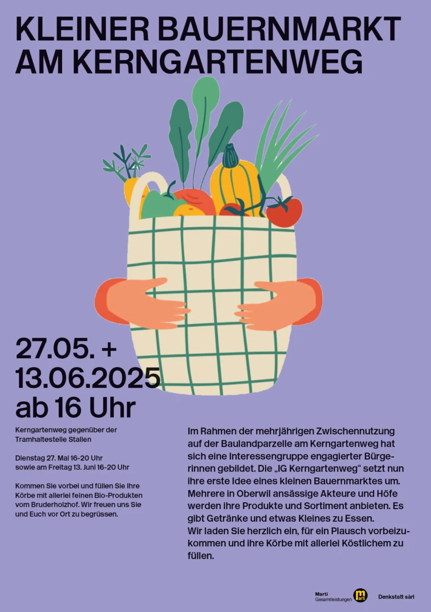 Eine erste Gelegenheit, das Areal kennenzulernen, bietet sich am 26. November 2024 um 18 Uhr beim Maroni-Plausch (vis-à-vis der Haltestelle Stallen), zu dem die Bevölkerung von Oberwil herzlich eingeladen ist.